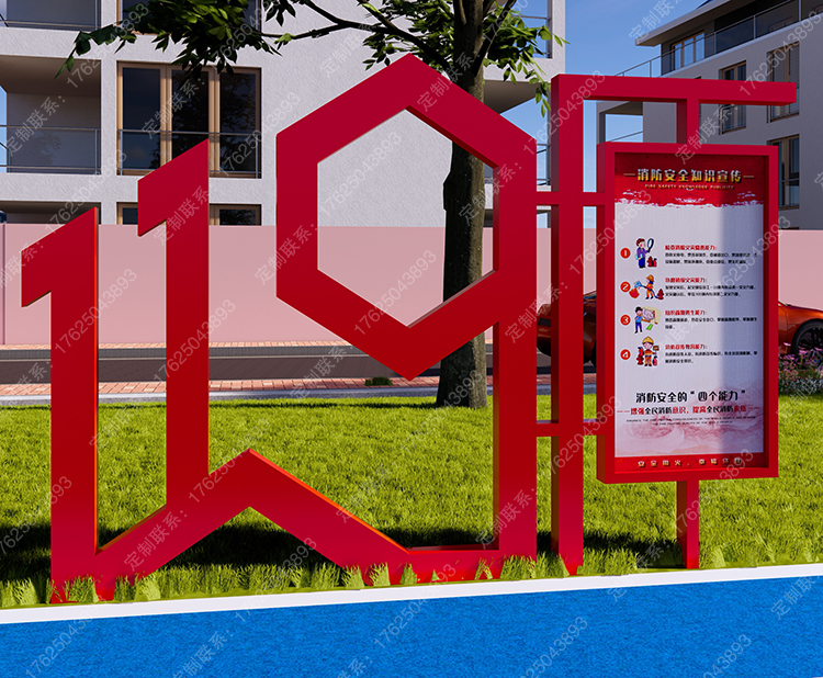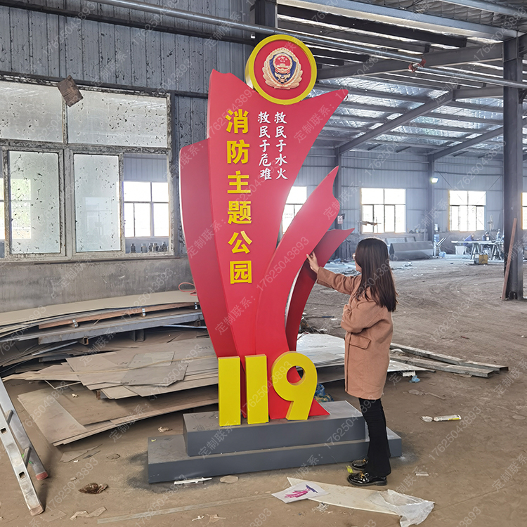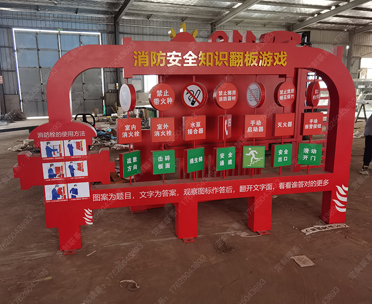 消防主題公園119文化廣場(chǎng)景觀座椅安全知識(shí)翻轉(zhuǎn)牌互動(dòng)翻翻樂雕塑